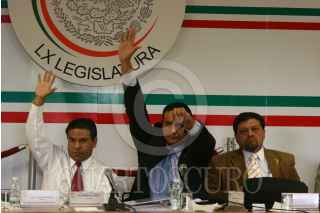 MÉXICO, D.,F 25OCTUBRE2008.- Los diputados Ricardo Aldana Prieto y David Maldonado votan durante La reunión de trabajo de la comisión de Energía de la Cámara de Diputados la cuál aprobó el segundo dictamen de siete, que conforman la reforma energética. FOTO: SÁSHENKA GUTIÉRREZ/CUATOSCURO.COM
