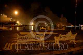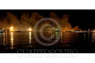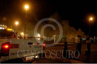 VERACRUZ, VERACRUZ, 26OCTUBRE2008.- Ayer por la noche se registró una fuerte explosión en la zona de contenedores del recinto portuario, un contenedor que transportaba ácido tricloroisocianúrico-seco, lo que provocó una nube toxica y la zona portuaria tuvo que ser desalojada en su totalidad, el área turística del malecón y colonias aledañas ubicadas al norte de la ciudad. FOTO: JOSÉ CANDELARIO/CUARTOSCURO.COM