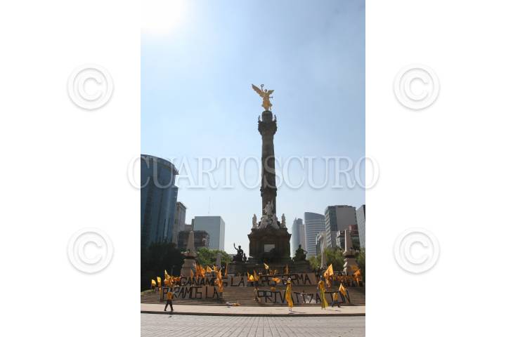 MÉXICO D.F., 29OCTUBRE2008.- Simpatizantes del PRD, festejaron en el Ángel de la Independencia la aprobación de la Reforma Energética con un letrero con la leyenda “ Ganamos la Reforma Paramos la Privatización”. FOTO: GUILLERMO PEREA/CUARTOSCURO.COM