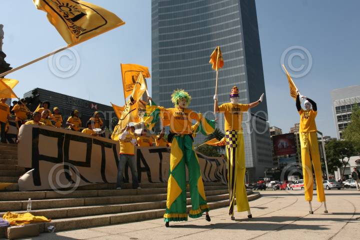 MÉXICO D.F., 29OCTUBRE2008.- Simpatizantes del PRD, festejaron en el Ángel de la Independencia la aprobación de la Reforma Energética con un letrero con la leyenda “ Ganamos la Reforma Paramos la Privatización”. FOTO: GUILLERMO PEREA/CUARTOSCURO.COM