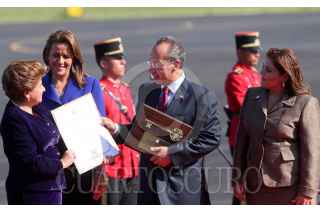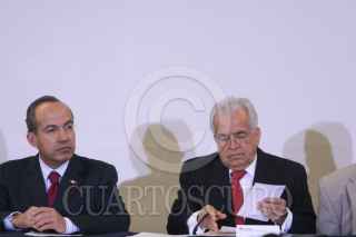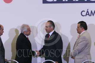 MEXICO, D.F., 29OCTUBRE2008.- Felipe Calderón Hinojosa, Presidente de México, tomo protesta a los nuevos integrantes de la Cámara Nacional del Autotransporte de Carga en el marco de su XIX Asamblea General Ordinaria que se realizó en el Centro de Exposiciones Bancomer. En la imagen es acompañado por Jorge Cárdenas Romo, quien rindio protesta como nuevo presidente de la CANACAR. FOTO: CUARTOSCURO.COM