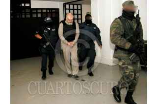 MEXICO D.F. 29OCTUBRE2008.-Eduardo Arellano Félix, alias "El Doctor", y Luis Ramírez, alias "El Güero Camarón" fue trasladado por elementos del AFI y el ejercito mexicano hacia el centro de alto mando de la PFP para despues ser llevado en helicoptero hacia el penal del altiplano en Almoloya de Juarez Estado de Mexico. FOTO: PGR/CUARTOSCURO.COM