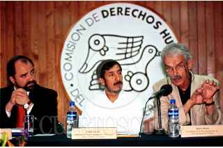 Emilio Alvarez Icaza, Edgar Cortez y Marcos Mona, hablaron sobre la próxima reunión internacional de defensores de Derechos Humanos, que se realizará en México. FOTO: Victoria Valtierra/CUARTOSCURO.COM