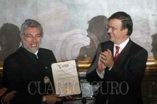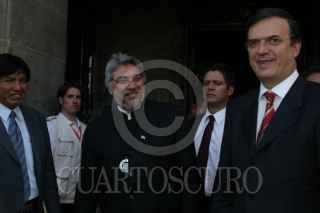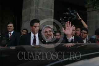 MÉXICO, D.F., 03NOVIEMBRE2008.- Fernando Lugo Méndez presidente de Paraguay a su salida del edificio del GDF donde recibió las llaves de ciudad, medalla y pergamino de declaratoria de huésped distinguido de manos de Marcelo Ebrar jefe de Gobierno del Distrito Federal. FOTO: SÁSHENKA GUTIÉRREZ/CUARTOSCURO.COM
