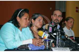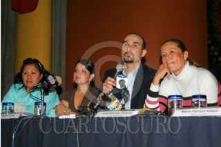 MÉXICO, D.F., 04NOVIEMBRE2008.- Las señoras, Esperanza Fajardo Ruiz, esposa de Juan Carlos Castro Galeana; Yudith Medina Ayala, esposa de Julio César Mondragón Mendoza y Julia Chavez, esposas de Alfredo Rosas Elicea, ofrecieron una conferencia donde piden a las autoridades que se haga justicia y se esclarezca esta situación de sus esposos quienes son los presuntos implicados en el atentado con granadas en la plaza de Morelos el pasado 15 de Septiembre ya que acaban de ser transladados al penal de Puente Grande en Jalisco. FOTO: ENRIQUE ORDÓÑEZ/CUARTOSCURO.COM