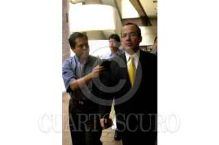 El líder de la fracción parlamentaria del PAN en la Cámra de Diputados, Felipe Calderon Hinojosa, ofreció una improvisada conferencia prensa en el recinto de San Lázaro. FOTO: Victoria Valtierra/CUARTOSCURO.COM