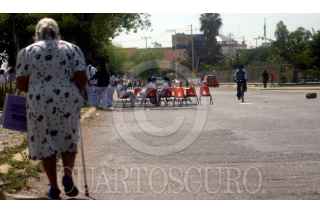 OAXACA, OAXACA, 05NOVIEMBRE2008.- Estudiantes de la Facultad de Enfermería de la UABJO, volvieron a bloquear la Avenida Ciudad Universitaria, debido a la falta de cumplimiento en la colocación de topes y semáforos. Acuerdos a los que llegaron con las autoridades municipales para reducir la probabilidad de accidentes en esa zona. Con palas y picos agruparon y marcaron las zonas donde deben estar los topes para el paso. FOTO: MAX NÚÑEZ/CUARTOSCURO.COM