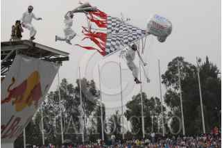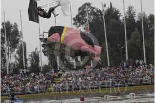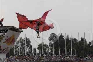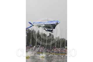 MÉXICO, D.F., 09NOVIEMBRE2008.- Deportistas extremos caen a las aguas de la pista de canotaje del canal de Cuemanco, los deportistas, participan en concurso donde echaron a volar su imaginación para crear cualquier tipo de vehículo con alas que deberá sostenerlos en el aire por el máximo tiempo posible para llevarse el titulo. FOTO: ALBERTO VERA/CUARTOSCURO.COM