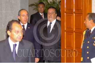 MÉXICO D.F., 10NOVIEMBRE2008.- El presidente, Felipe Calderón Hinojosa, está mañana nombró a Fernando Francisco Gómez Mont Urueta, como nuevo Secretario de Gobernación, quien sustituirá a Juan Camilo Mouriño luego de su fallecimiento el pasado martes en un accidente aéreo. FOTO: GUILLERMO PEREA/CUARTOSCURO.COM