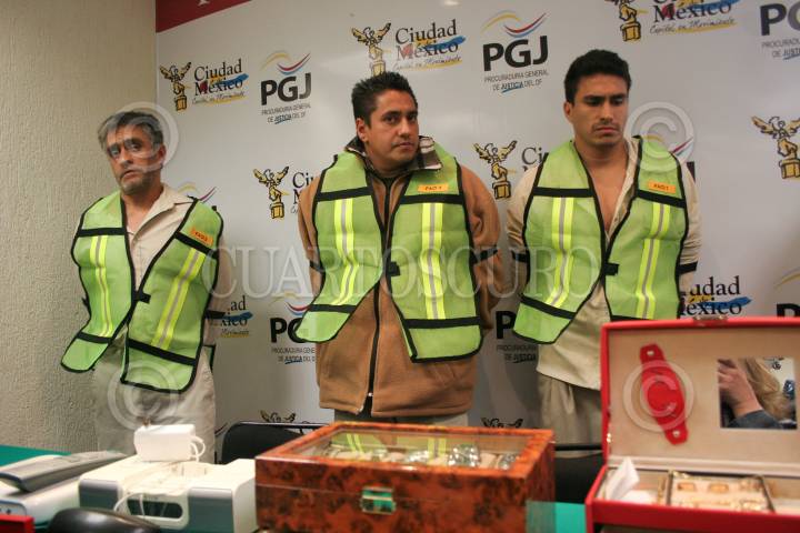 MÉXICO, D.F., 10NOVIEMBRE2008.- Relojes, joyas, armas, un auto BMW, 2 motocicletas, entre otras cosas le fueron encontradas a 3 hermanos. Tienen relacion con una banda que se dedican a robos de casas habitacion de lujo, y fueron arraugados por 30 días. Gerardo Javier y Felipe González Unda de 44, 37 y 26 años respectivamente. FOTO: VICTORIA VALTIERRA/CUARTOSCURO.COM