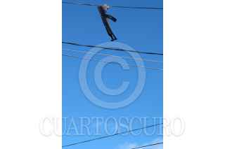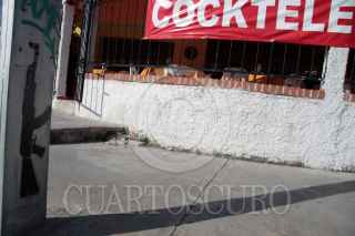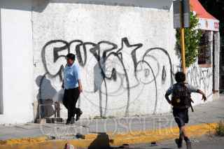 CANCÚN, QUINTANA ROO, 11NOVIEMBRE2008.- Autoridades locales atribuyen al narcotrafico las apariciones de señalizaciones con pintura en postes, mensajes y objetos colgantes en cables de luz. Las anteriores pintas sobresalen en la calle ChichenItza; la cual es una arteria de comunicación muy concurrida, y en donde se presume habra un acontecimiento sangriento que marque este destino turístico. FOTO. MARCO POLO GUZMÁN HERNÁNDEZ/CUARTOSCURO.COM