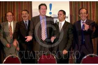 José Luis Durán, vocero de la Secretaría de Gobernación, platica con Claudio X. González, presidente de la Fundación Televisa, durante la presentación de la campaña publicitaria para ahorrar el consumo del Agua. FOTO: Victoria Valtierra/CUARTOSCURO.COM