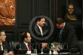 MÉXICO, D.F., 11NOVIEMBRE2008.- Sesión ordinaria en el Senado de la República, que se efectuó esta tarde en la imagen los senadores Gustavo Madero y Carlos Navarrete. FOTO: SÁSHENKA GUTIÉRREZ/CUARTOSCURO.COM
