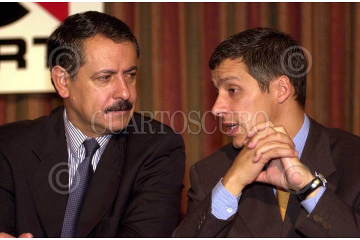 José Luis Durán, vocero de la Secretaría de Gobernación, platica con Claudio X. González, presidente de la Fundación Televisa, durante la presentación de la campaña publicitaria para ahorrar el consumo del Agua. FOTO: Victoria Valtierra/CUARTOSCURO.COM