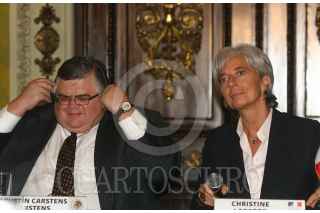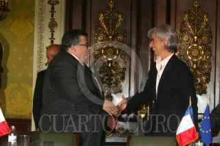 MÉXICO, D.F., 11NOVIEMBRE2008.- El Secretario de Hacienda y credito Publico, Agustin Carstens y la Ministra de Economia, Industria y Empleo de Francia Chistine Lagarde se reunieron ésta tarde en Palacio Nacional como parte de la visita unilateral de la ministra con el gobierno de México FOTO: SAÚL LÓPEZ/CUARTOSCURO.COM