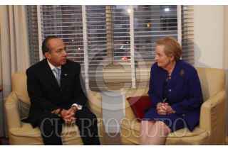 WASHINGTON D.C.14 NOVIEMBRE2008.- Felipe Calderon Presidente de México durante la reunión que sostuvo con la ex secretaria de estado Madelein Albright representante del Presidente electo Barack Obama. FOTO: ALFREDO GUERRERO/CUARTOSCURO.COM