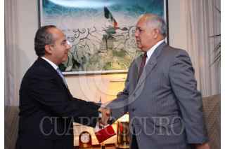 WASHINGTON D.C.14 NOVIEMBRE2008.- Felipe Calderon Presidente de México durante la reunión que sostuvo con el congresista Silvestre Reyes FOTO: ALFREDO GUERRERO/CUARTOSCURO.COM