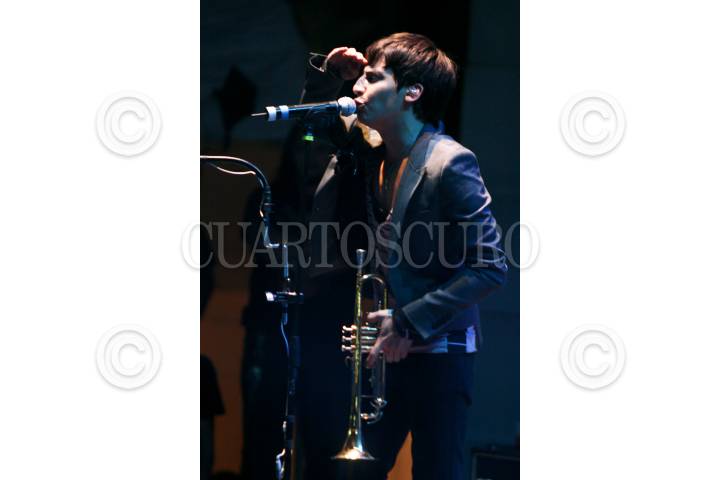 PUEBLA, PUEBLA, 14NOVIEMBRE2008.- Cientos de jóvenes presenciaron esta noche los conciertos de Kinky y de Plastilina Mosh que tocarón en el Zócalo de esta ciudad como parte del 10 festival Internacional de Puebla 2008 que se celebrará en esta ciudad del 13 al 23 de noviembre. FOTO: RODOLFO ANGULO/CUARTOSCURO.COM