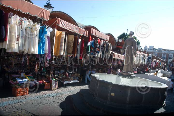 PUEBLA, PUEBLA, 15NOVIEMBRE2008.- En el mercado de El Parían ubicado en el centro de esta ciudad se consigue todo tipo de artesanías típicas del lugar en especial la fina cerámica de Talavera. FOTO: RODOLFO ANGULO/CUARTOSCURO.COM