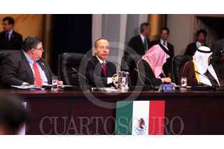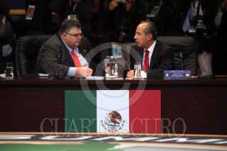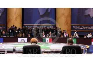 WASHINGTON D.C. 15NOVIEMBRE2008- Felipe Calderon Hinojosa, Presidente de México, acompañado Agustín Carstens, Secretario de Hacienda y Crédito Público, durante la primera sesión plenaria de los jefes de Estado y de Gobierno participantes en la reunión del G-20. FOTO: ARIEL GUTIERREZ/CUARTOSCURO.COM