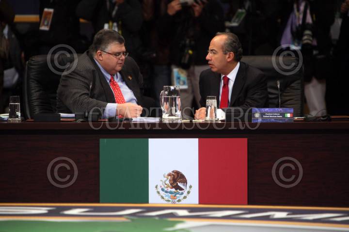 WASHINGTON D.C. 15NOVIEMBRE2008- Felipe Calderon Hinojosa, Presidente de México, acompañado Agustín Carstens, Secretario de Hacienda y Crédito Público, durante la primera sesión plenaria de los jefes de Estado y de Gobierno participantes en la reunión del G-20. FOTO: ARIEL GUTIERREZ/CUARTOSCURO.COM