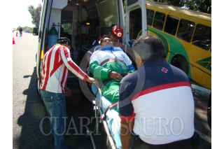 CUERNAVACA, MORELOS, 15OCTUBRE2008.- La mañana de este sábado se registró un accidente en la autopista México-Cuernavaca (dirección sur), kilómetro 64+500, antes de llegar a la curva de La Pera, en donde resultaron lesionadas 22 personas. El percance se registró a las 08:52 horas aproximadamente, cuando se solicitó la presencia de los cuerpos de rescate, acudiendo personal del Escuadrón de Rescate y Urgencias Médicas a bordo de la R-05, de Capufe, Cruz Roja y Surgemed, quienes se trasladaron a brindar los servicios prehospitalarios. Resultaron involucrados un autobús con placas de circulación 229RJG, Línea Alipu, color amarillo, económico 496, del Servicio Público Federal, conducido por Ernesto Ortiz Reyna, los cuales se dirigía a un partido de fútbol a Oaxtepec; un vehículo Volkswagen, tipo Bora color negro, con placas de circulación 937-VDP del DF, uno motocicleta Harley Davison, color negra, con placas JAB-11 del Estado de México. FOTO: LUIS GIRON/CUARTOSCURO.COM