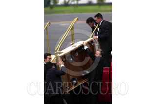 Elementos del Estado Mayor Presidencial depositan el vehiculo en el que se transladó el Papa Juan Pablo II en todas las ceremonias que se realizaron en nustro país. FOTO: Pedro Mera/CUARTOSCURO.COM
