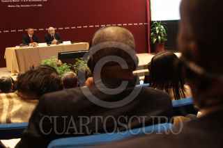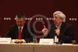MÉXICO, D.F., 17NOVIEMBRE2008.- Leonardo Valdez Zurita Presidente Consejero del IFE y Dante Caputo Presidente de la Organización de Estados Americanos presidieron la Primera Jornada Interamericana Electoral que se efectuó en las instalaciones del IFE con la Presencia de Estudiosos de las leyes electorales provenientes de distintos países del continente. FOTO: COSME RADA/CUARTOSCURO.COM