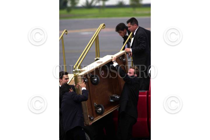 Elementos del Estado Mayor Presidencial depositan el vehiculo en el que se transladó el Papa Juan Pablo II en todas las ceremonias que se realizaron en nustro país. FOTO: Pedro Mera/CUARTOSCURO.COM