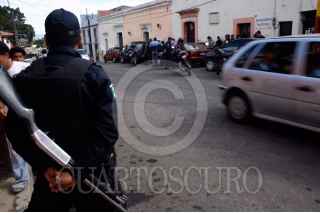 OAXACA, OAXACA 17NOVIEMBRE2008.-Esta tarde se implemento un dispositivo de seguridad a solo unas horas del cuarto informe del gobernador del estado, a unas calles del zócalo capitalino, ya que una mujer al parecer de nombre Adriana Cruz de 26 años y un sujeto de 30 años, a la salida de un conocido bar, ubicado en la calle de Cosijopi, presuntamente 5 personas armadas ya los esperaban a bordo de dos camionetas cerradas de color negro sin placas, por lo que la pareja no pudo hacer nada al ser amagados y obligados a subirse a las unidades, para huir hacia el norte de la ciudad. FOTO: MAX NÚÑEZ/CUARTOSCURO.COM