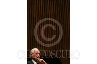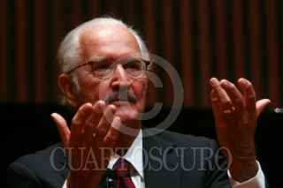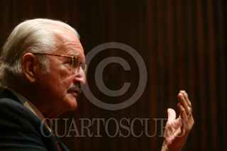 MÉXICO D.F., 18NOVIEMBRE2008.- El escritor Carlos Fuentes durante la conferencia de prensa que ofreció esta mañana a los medios de comunicación en la sala Carlos Chávez del Centro Cultural Universitario, previo al homenaje que se le rindio al escritor en las instalaciones de la universidad. FOTO: SÁSHENKA GUTIÉRREZ/CUARTOSCURO.COM