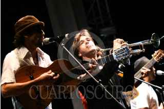 PUEBLA, PUEBLA, 20NOVIEMBRE2008.- El grupo argentino Los Pinguos del sello disquero Putumayo se presento se presento esta noche en el zócalo de esta ciudad en la edición 10 del Festival Internacional de Puebla que ese fin de semana llega a su fin después de dos semanas de eventos culturales, artísticos y musicales. FOTO: RODOLFO ANGULO/CUARTOSCURO.COM