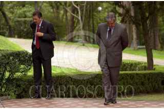 El teniente Coronel Adams y el vocero de la Presidencia de la República, Rodolfo Elizondo, caminan por los jardines de la residencia de Los Pinos, cerca del lugar en donde Vicente Fox ofrece un homenaje al equipo ganador del campeonato mundial de beisbol IBA -Boys. FOTO: Victoria Valtierra/CUARTOSCURO.COM