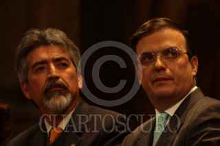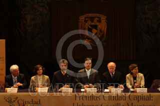 MÉXICO, D.F., 21NOVIEMBRE2008.- El Jefe de Gobierno Marcelo Ebrard en compañía de Esther Orozco Directora del ICT, Axel Didriksson Secretario de Educación del DF y los Rectores de las universidades : UNAM, UAM y Politecnico Nacional; encabezaron la entrega de los Premios Ciudad Capital "Heberto Castillo Martinez 2008" a científicos destacados de América Latina por sus importantes atribuciones a la ciencia en pos del desarrollo de México. FOTO: COSME RADA/CUARTOSCURO.COM