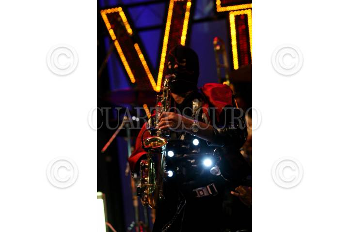 PUEBLA, PUEBLA, 21NOVIEMBRE2008.- El grupo de rock Las Victimas del Doctor Cerebro presento esta fría noche en el zócalo de esta ciudad en la edición 10 del Festival Internacional de Puebla que este fin de semana llega a su fin después de dos semanas de eventos culturales, artísticos y musicales. FOTO: RODOLFO ANGULO/CUARTOSCURO.COM
