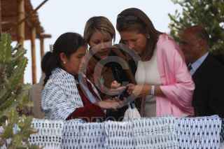 LIMA PERU,22 NOVIEMBRE2008.- La primera Dama esposa del presidente de México Felipe Calderon Margarita Zavala acompañada por la esposa del embajador de México en Perú Claudia González observan los trabajos artesanales de la zona arqueológica de Pachamac. FOTO: IMPERIO RESENDIZ/CUARTOSCURO.COM