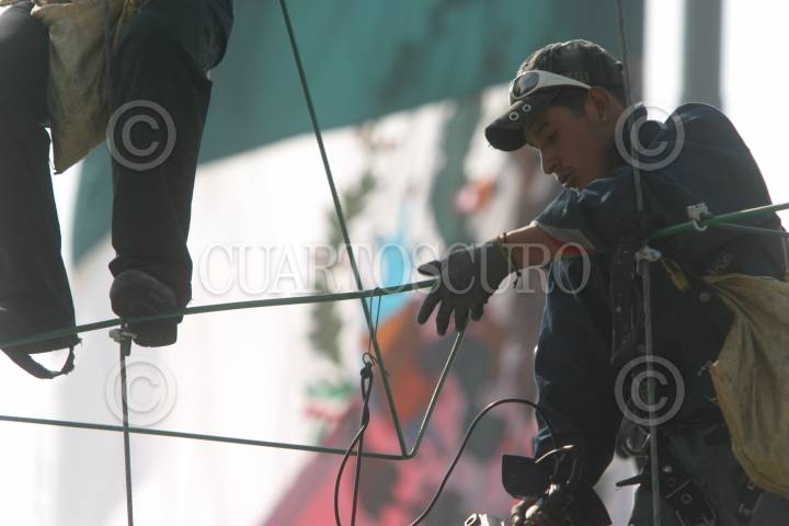 MÉXICO, D.F., 23NOVIEMBRE2008.- Trabajadores del Gobierno del Distrito Federal trabajan en colocar un árbol gigante de navidad, en la plancha del Zócalo Capitalino. FOTO: SÁSHENKA GUTIÉRREZ/CUARTOSCURO.COM
