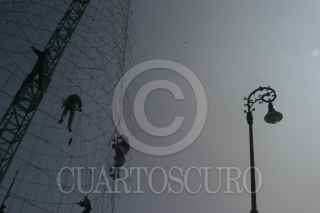 MÉXICO, D.F., 23NOVIEMBRE2008.- Trabajadores del Gobierno del Distrito Federal trabajan en colocar un árbol gigante de navidad, en la plancha del Zócalo Capitalino. FOTO: SÁSHENKA GUTIÉRREZ/CUARTOSCURO.COM