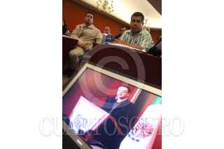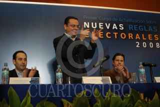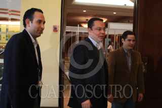 MÉXICO, D.F., 23NOVIEMBRE2008.- El presidente Nacional del PAN Germán Martínez Cazarez, en compañía de Roberto Gil Zurath Consejero del PAN en el IFE y Rogelio Carbajal Tejeda Secretario del C.E.N. del PAN; clausuraron las jornadas del Primer curso de actualización sobre nuevas reglas Electorales, desarrollado en un reconocido hotel al sur de la ciudad. FOTO: COSME RADA/CUARTOSCURO.COM