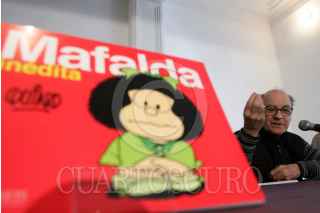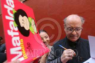 MÉXICO, D.F., 26NOVIEMBRE2008.- Joaquín Salvador Lavado Tejón, mejor conocido como "Quino" y autor de la tira cómica Mafalda, ofreció una conferencia de prensa para presentar su nuevo libro Mafalda Inédita. Las tiras que integrán esta edición fueron, en muchos casos, deliberadamente omitidas de los libro precedentes -Primera Plana El Mundo y Siete Días Ilustrados-. La decisión de darlas a conocer a través de una nueva edición significa no solamente un homenaje a la verdad histórica de Mafalda, sino también un llamado a la reflexión sobre casi una década de la historia local y mundial. FOTO: MOISÉS PABLO/CUARTOSCURO.COM