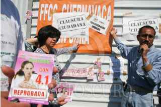 MÉXICO, D.F., 27NOVIEMBRE2008.- Vecinos de la delegación Miuel Hidalgo pertenecientes a la organización denominada Urbanitas Clausuraron simbólicamente la obra en costrucion llamada prolongación embudo ubicada en Ferrocarril de Cuernavaca, esquina Ejercito Nacional, de igual manera repartieron volantes en los cuales reprobaban a la delegada Gabriela Cuevas con una calificación de 4.1 en dicha encuesta participaron 7834 vecinos de esta demarcación. FOTO: RICARDO CASTELAN/CUARTOSCURO.COM
