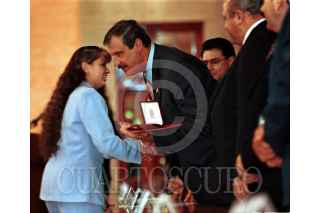 En la tarde, el presidente Vicente Fox encabezó la ceremonia de entrega de la presea "Lázaro Cárdenas" e inauguró el ciclo académico del Instituto Politécnico Nacional. FOTO: Victoria Valtierra/CUARTOSCURO.COM