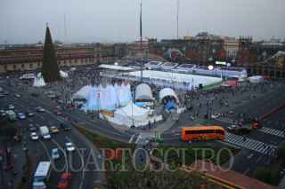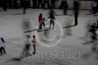 MÉXICO, D.F., 01DICIEMBRE2008.- La pista de hielo que esta instalada desde el sabado anterior, reúne a miles de personas que buscan una oportunidad para patinar dentro de ella. Así mismo envaina de un aire navideño la zona del Zocalo Capitalíno. FOTO: COSME RADA /CUARTOSCURO.COM