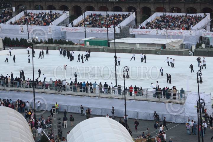MÉXICO, D.F., 01DICIEMBRE2008.- La pista de hielo que esta instalada desde el sabado anterior, reúne a miles de personas que buscan una oportunidad para patinar dentro de ella. Así mismo envaina de un aire navideño la zona del Zocalo Capitalíno. FOTO: COSME RADA /CUARTOSCURO.COM