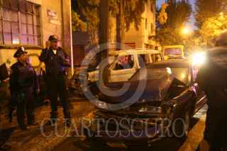 MEXICO, D.F. 02DICIEMBRE2008.- Después de una persecución por parte de elementos de la policía estatal y municipal de Naucalpan dos vehículos se incendiaron y quedaron impactados en una casa de la calle Lago Valencia en la colonia Nueva Argentina de la delegación Miguel Hidalgo. FOTO: SAUL LOPEZ/CUARTOSCURO.COM