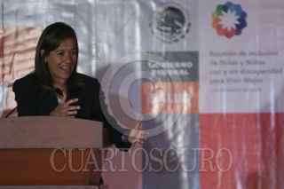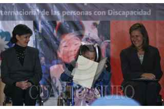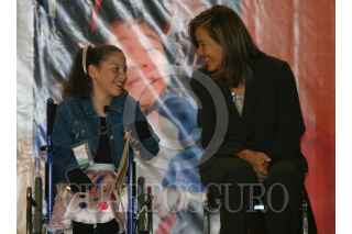 MÉXICO, D.F., 03DICIEMBRE2008.- Margarita Zavala, esposa del presidente Felipe Calderón, cuida a un niño en silla de ruedas al termino de la Reunión de Inclusión de Niños y Niñas con y sin Discapacidad que se realizo en la Casa Hogar de Coyoacan. FOTO: RODOLFO ANGULO/CUARTOSCURO.COM