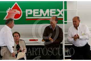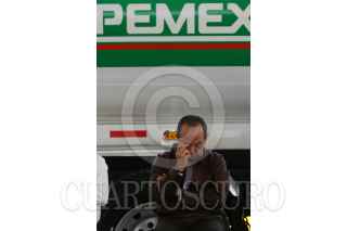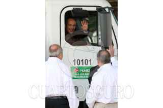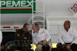MÉXICO D.F., 03DICIEMBRE2008.- El presidente, Felipe Calderón Hinojosa, realizo la entrega de Autos Tanque de la Flota de Reparto de PEMEX Refinación, esto en la Terminal de Almacenamiento y Reparto “18 de Marzo” . FOTO: GUILLERMO PEREA/CUARTOSCURO.COM