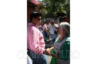 CHILPANCINGO, GUERRERO, 03DICIEMBRE2008.- El alcalde de Chilpancingo Mario Moreno Arcos durante el recorrido que realizo por las instalaciones de la Feria de San Mateo, Navidad y Año Nuevo, donde inauguro algunas de las remodelaciones que se hicieron en dicho lugar. En la imagen al saludar a una señora de edad avanzada que trabaja como barrendera. FOTO:OSCAR ALVARADO/CUARTOSCURO.COM