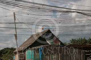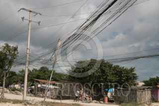 CANCÚN, QUINTANA ROO, 08DICIEMBRE2008.- Habitantes de la región 236 que viven en zona humilde y que no cuentan con energía eléctrica optaron por robarse la luz al colgarse de un transformador propiedad de la Comisión Federal de Electricidad, sin embargo, al poner sus diablitos los cables quedan a nivel muy bajo lo que podría provocar una tragedia. FOTO: MARCO POLO GUZMÁN HERNÁNDEZ/CUARTOSCURO.COM