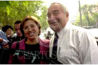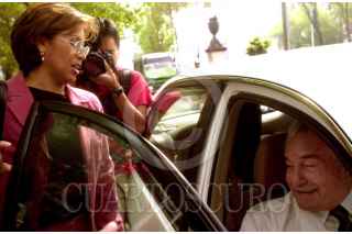 Rosario Robles Berlanga, líder del Partido del Sol Azteca, posó para la foto con el secretario de Energía, Ernesto Martens, quien inauguró el foro nacional de discusión "Por un desarrollo energético sustentable. La reforma eléctrica", que organizó el PRD. FOTO: Victoria Valtierra/CUARTOSCURO.COM